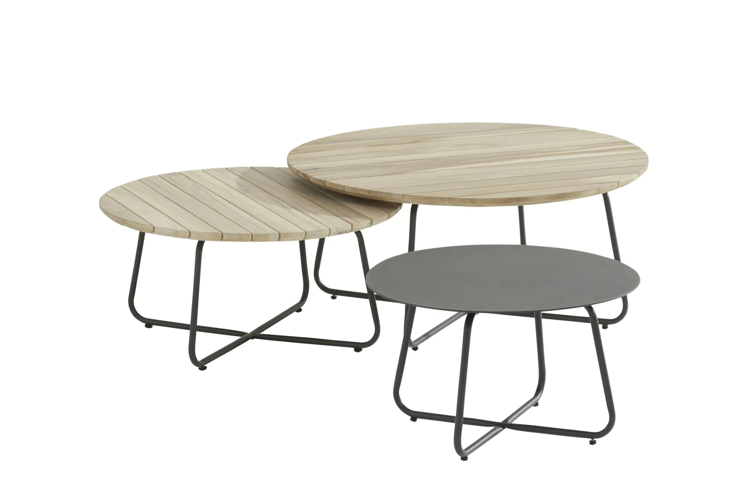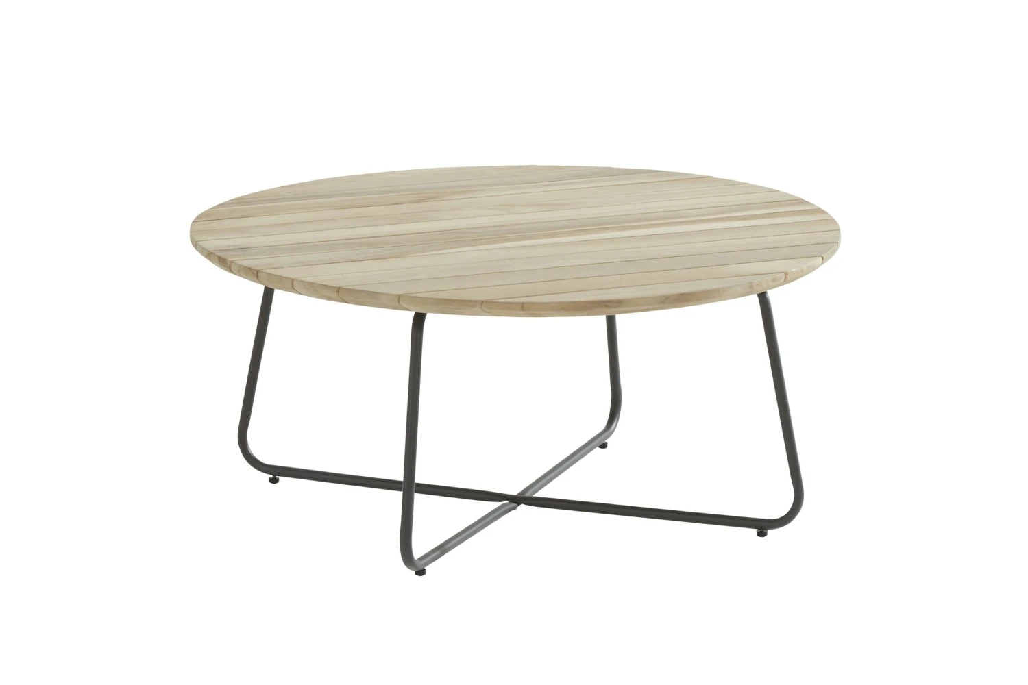 Four Seasons Outdoor Axel coffee table teak round 90 cm (H 40 cm). Een robuuste koffietafel voor in de tuin. Deze tafel laat zich makkelijk combineren met een outdoor loungeset. Dit teak houten blad heeft een mooie finish met instant grey. Het stevige onderstel is gemaakt van RVS en heeft een poedercoating in de kleur antraciet.
