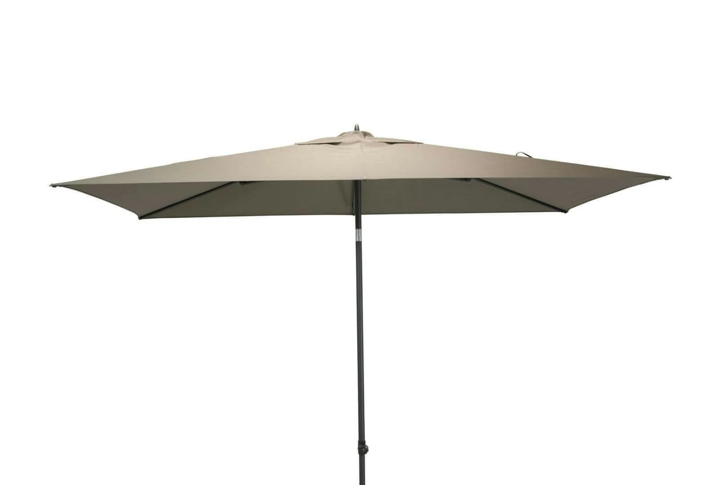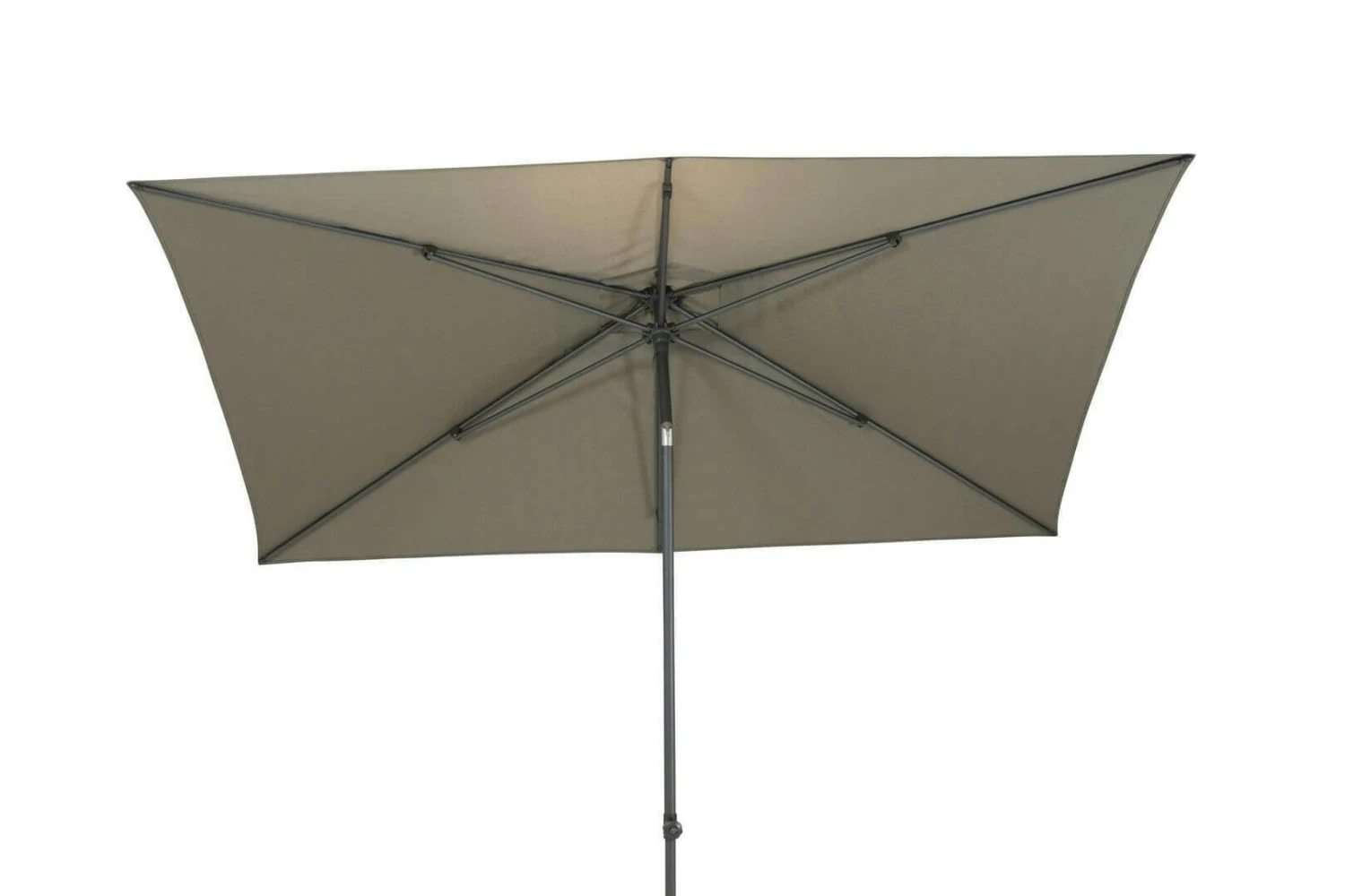 Het parasol doek is van hoge kwaliteit, 100% Solefin van 195 gram / M2 – dat staat gelijk aan ongeveer UPF 50+. Het doek kan tegen een regenbui en blijft lang mooi van kleur, ook is deze nog beter bestand tegen UV dan polyester materialen. Het lichtgewicht aluminium frame heeft een antraciet poedercoating en bestaat ui 2 delen (onder stok apart). Wanneer de parasol niet in gebruik is adviseren we altijd een beschermhoes te gebruiken.