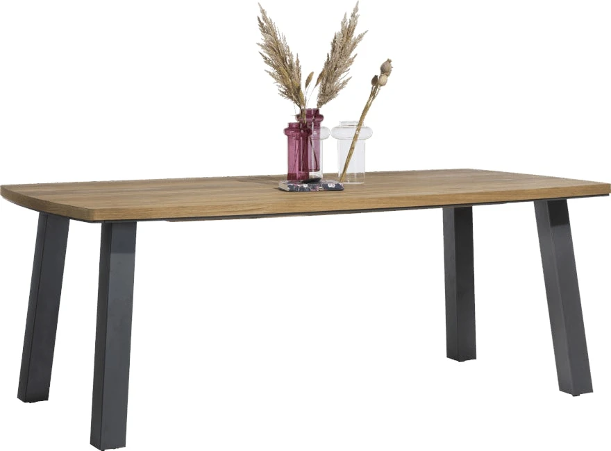 In de Arizona collectie vind je twee modern landelijke eetkamertafels met verschillende afmetingen. Er is een eettafel van 210 x 105 cm en een tafel van 160 x 105 cm. Opvallend aan de tafels zijn de stoere metalen tafelpoten. Het eiken houten tafelblad heeft afgeronde hoeken.