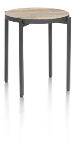 Dit kleine tafeltje uit de collectie Ostrava van [email protected] heeft heel wat speciale kenmerken. Er zijn 3 verschillende kleine ronde tafels in deze collectie, die samen een mooi geheel vormen. Dit is de kleinste, maar hoogste versie met een diameter van 44 cm en een hoogte van 46 cm. De tafeltjes hebben een tafelblad van Primo Laminato dat uitgevoerd is in twee kleuren: Driftwood en Natural. Het handige aan dit tafelblad is dat het perfect om te draaien is, zodat je de look van je meubel kan variëren.