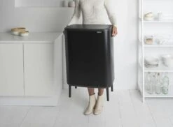 Op zoek naar een mooie oplossing voor het scheiden van je afval? Deze XXL Brabantia Bo Touch Bin Hi 2 x 30 liter heeft een prachtig design en alles wat je nodig hebt om thuis makkelijk afval te scheiden. Zoals twee ruime en uitneembare binnen emmers voor 2 soorten afval. Opent bij de lichtste aanraking, past perfect tegen een muur en is super stabiel dankzij de verstelbare antislip voetjes. Twee afvalemmers op de plaats van één.