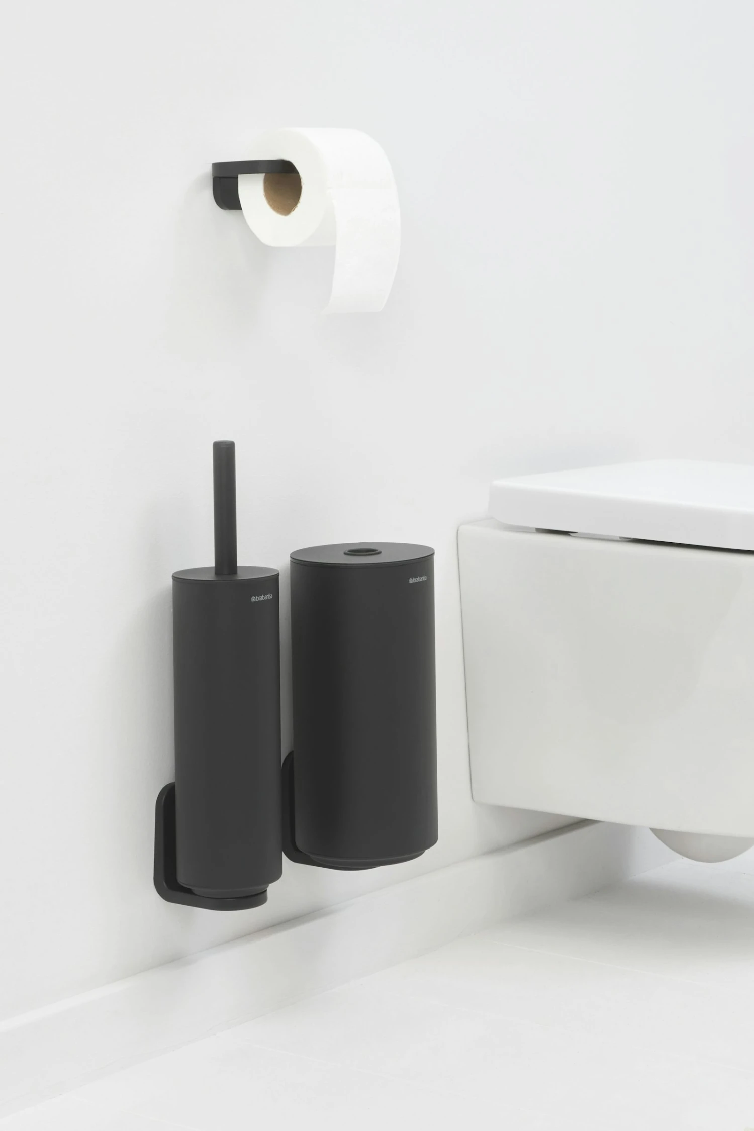 Uitgekeken op je toilet? Dit toptrio staat klaar om je kleinste kamertje een stijlvolle make-over te geven. De Brabantia MindSet toiletaccessoire set heeft om te beginnen een sterke en hygiënische toiletborstel met houder. De minimalistische toiletrolhouder houdt je wc-papier altijd bij de hand en in de reserverolhouder verstop je nog eens twee rollen. Alles wat je nodig hebt voor een stijlvol toilet.