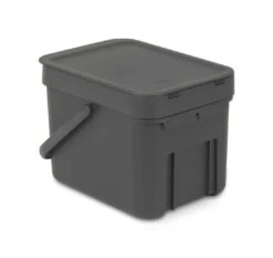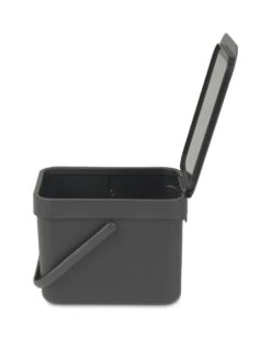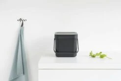 Dit leuke Brabantia sort & go afvalemmertje van 6 liter met openblijvend deksel is super voor schillen, korstjes, kliekjes … eigenlijk voor al je organische keukenafval. Zet hem op je aanrecht, verstop hem in een la of hang ‘m aan de muur met de bijgeleverde muurbeugel. Vol? Grijp het handige hengsel en leeg hem. Oh, en wil je er afvalzakken bij? De perfectfit 100% composteerbare zakken, maat S, passen perfect. XS formaat, XL gemak.