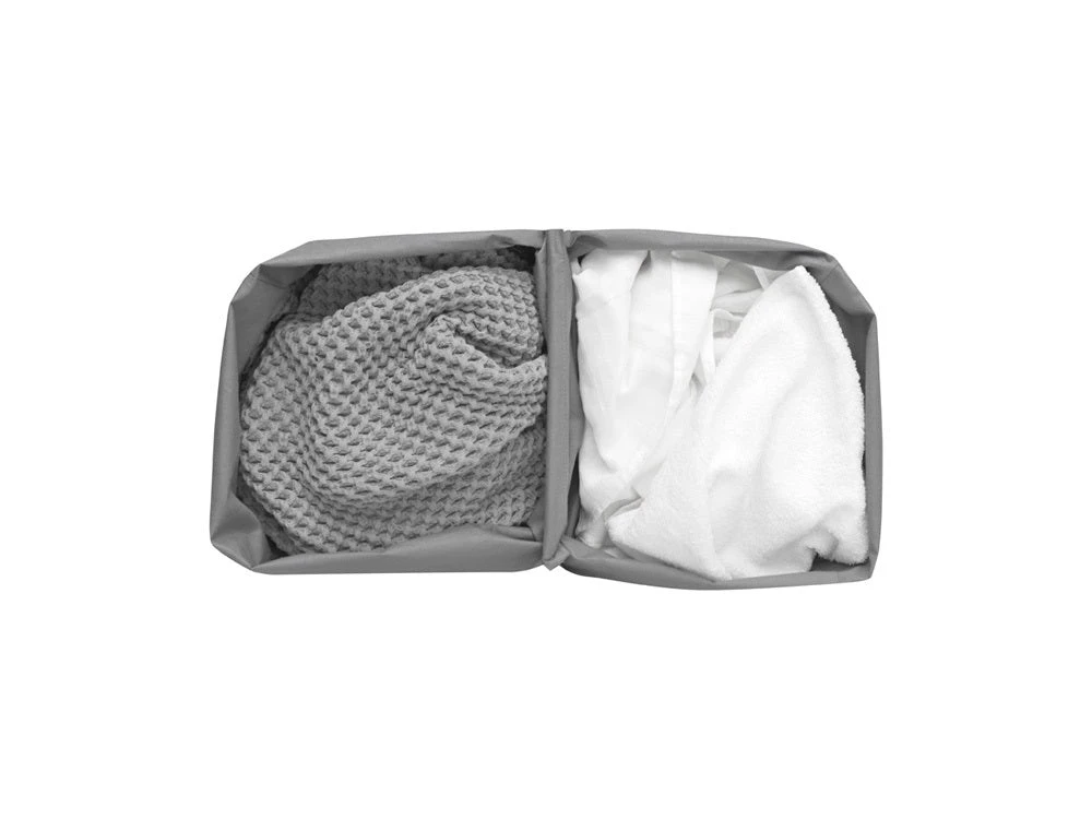 Ontmoet Brabantia’s vervangende waszak voor Bo Hi Wasbox 2×45 liter met twee aparte was vakken. Past perfect, is wasbaar en maakt het makkelijk om je wasgoed te sorteren en mee te nemen naar de wasmachine.