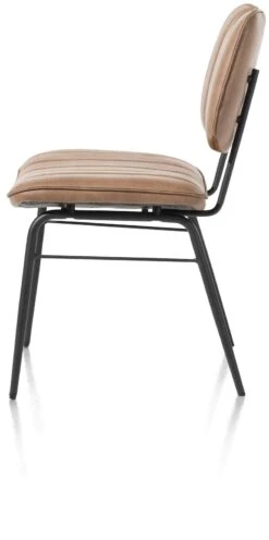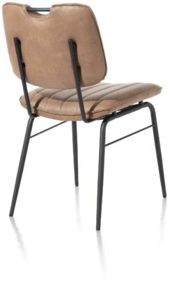 Deze stoere eigentijdse eetkamerstoel Bristol zit heerlijk. De stoel heeft zwart metalen stoelpoten. Voor de bekleding is gekozen voor de lederlookstof Pala in de kleur cognac. Pala is een onderhoudsvriendelijke stof met de uitstraling van leder. De stiknaden op de zitting en rugleuning geven de eetkamerstoel een stoer uiterlijk. Eetkamerstoel Bristol is in verschillende kleuren verkrijgbaar, en heeft een makkelijke greep bovenop, zodat je de bekleding makkelijk schoon kunt houden. Afmetingen: 85 x 48 x 59 cm. (H x B x D).