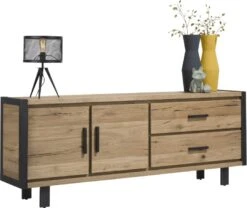 Dressoir Brooklyn is een robuuste dressoir uit de collectie van [email protected] en past mooi bij een landelijk interieur. Het dressoir is gemaakt van eikenhout en is gecombineerd met zwart metaal. Dit zorgt voor een stoer uiterlijk. Het eikenhout is afgewerkt in de kleur railway brown, waardoor de prachtige tekening van het hout nog beter uitkomt. Dressoir Brooklyn heeft 2 deuren en 2 laden waardoor je spullen makkelijk op kunt bergen. Een dressoir wordt vaak gebruikt als meubel om de televisie op de plaatsen, maar je kan ook de mooiste woonaccessoires hierop tonen. Het Brooklyn dressoir is ook verkrijgbaar in een uitvoering van 210 cm en 240 cm.