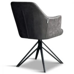 Comfortabele armleuningstoel met een handig draaimechanisme om gemakkelijk aan tafel te draaien en weer op te staan. Leverbaar in de 4 kleuren: Cognac, Antraciet, Pebble en Moss. Onderstel zwart metaal.