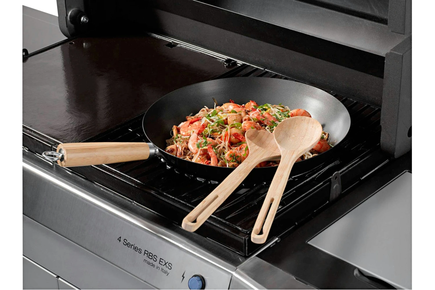 Koolstofstalen wokpan met anti-aanbaklaag, perfect voor Aziatische gerechten die direct op de grill worden bereid. De Culinary Modular Mandarin Wok is compatibel met het Campingaz® Culinary Modular System.