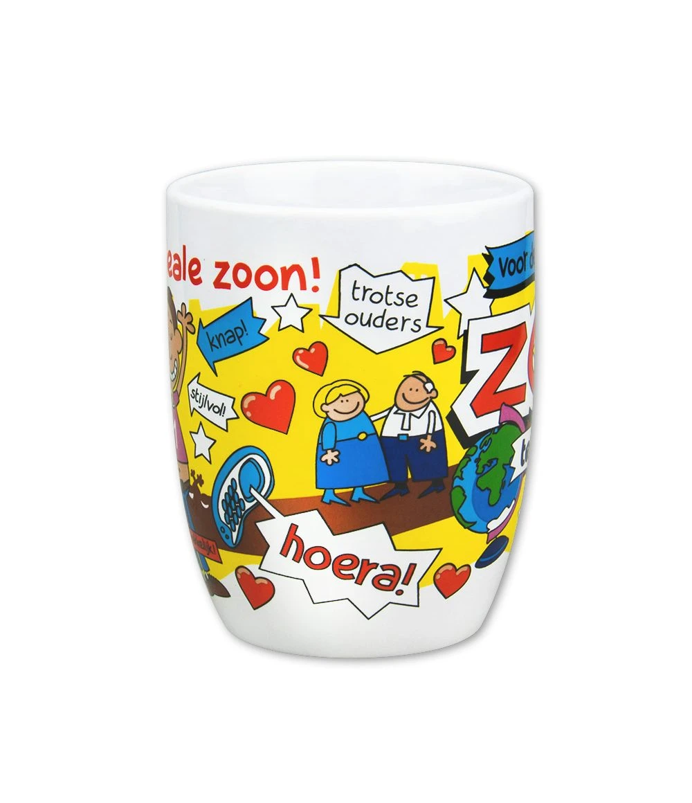 Deze mok met grappige tekening en tekst zoon is gemaakt van keramiek en door de unieke ‘cartoon’ style is deze mok een echte eyecatcher.