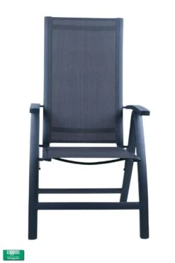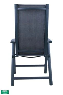 Zeer comfortabele stoel, makkelijk in te klappen. Dat is handig om op te bergen of om mee te nemen. Het frame is geheel van onderhoudsvrij aluminium. De zitting en rug zijn van textileen. Je hebt niet perse een kussen nodig, het mag natuurlijk wel. ’s Avonds als het afkoelt is het wel eens fijn om een kussen in de rug te hebben.