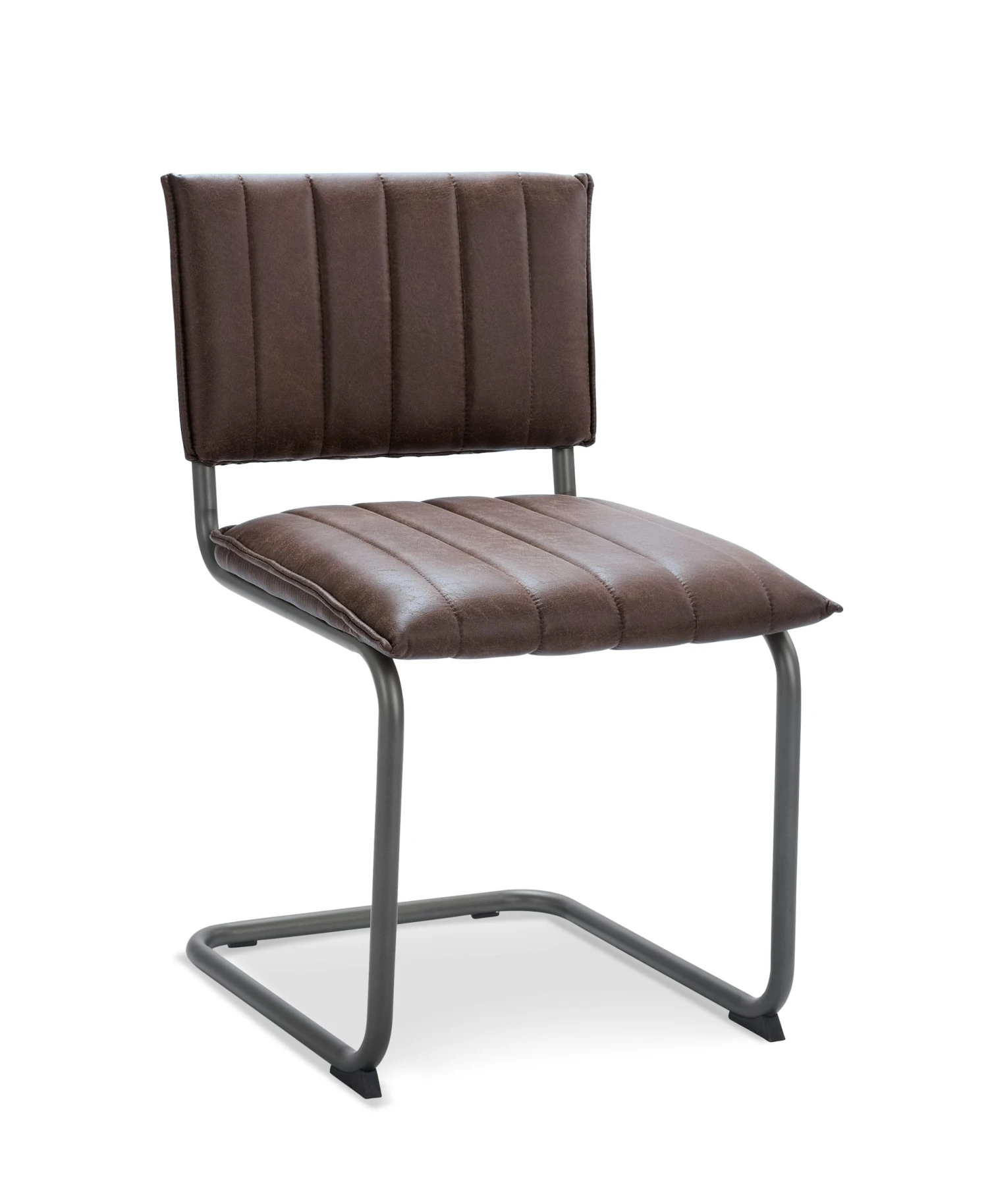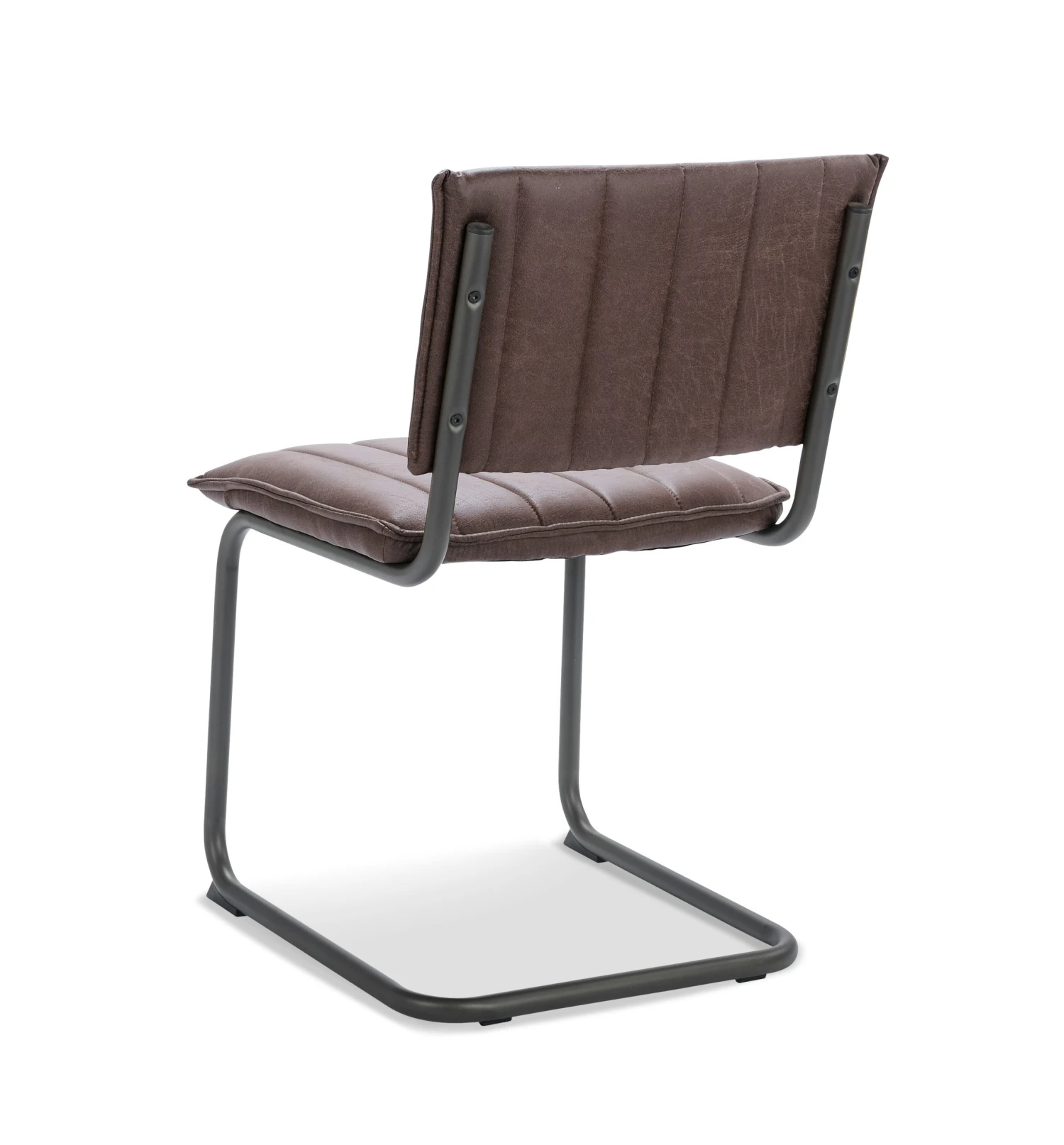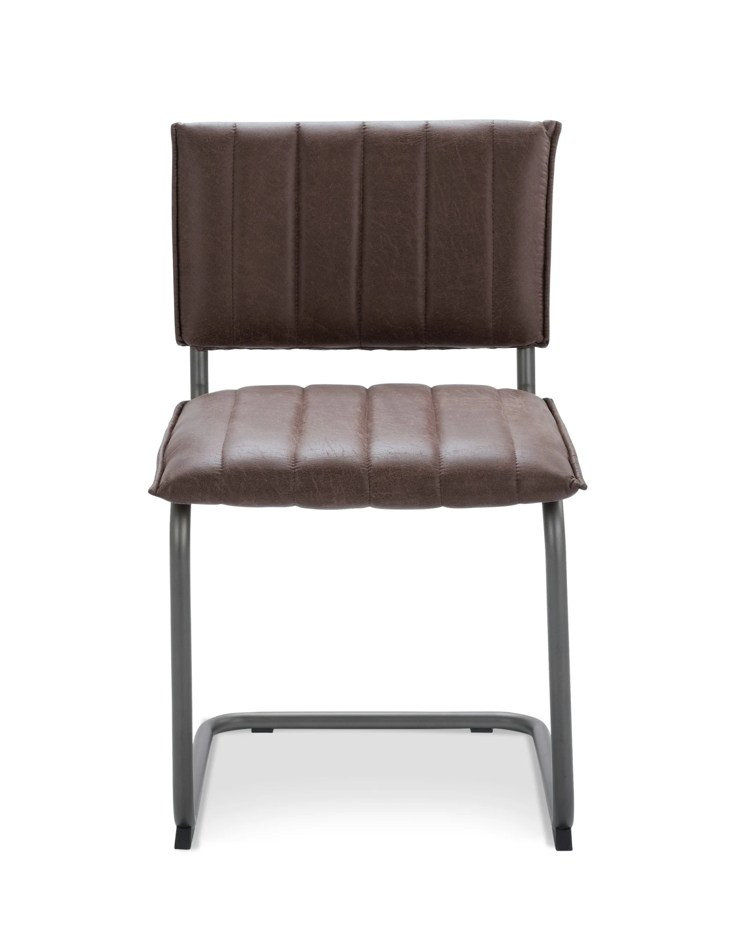 Stoel Dean met sledeframe en bekleed in de microvezelstof Rawhide. Leverbaar in diverse kleuren: Brown, Cognac, Green en Grey.