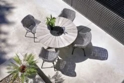 Een echte eyecatcher is deze Delphine dining stoel van Hartman. Deze diningstoel is vervaardigd uit een kuip van 3-kleurig wicker en een gecoat aluminium onderstel. Het zitcomfort van de Delphine dining is extreem goed door de mal die is gebruikt. U krijgt de maximale steun in de rug zodat u uren kunt tafelen en borrelen. Enjoy Hartman!