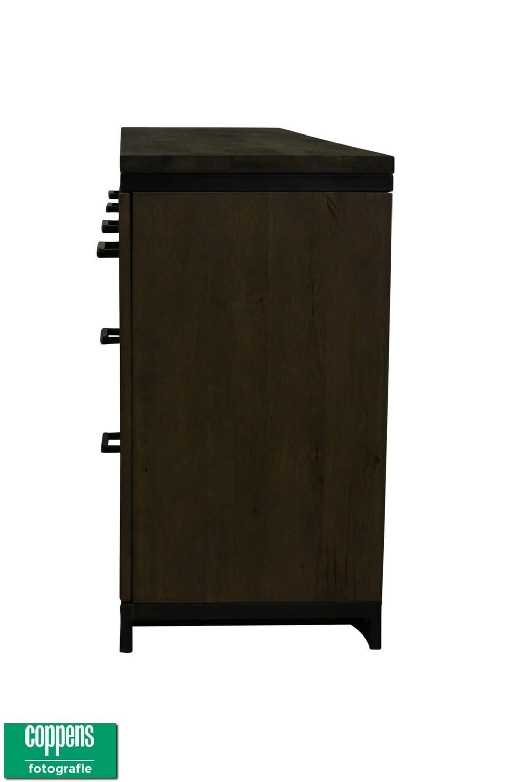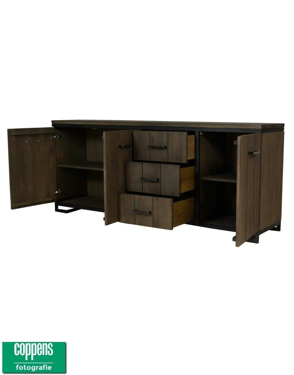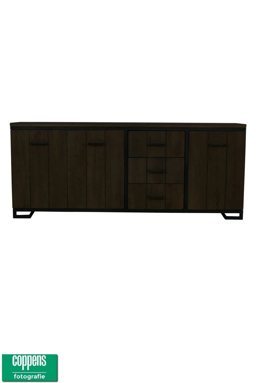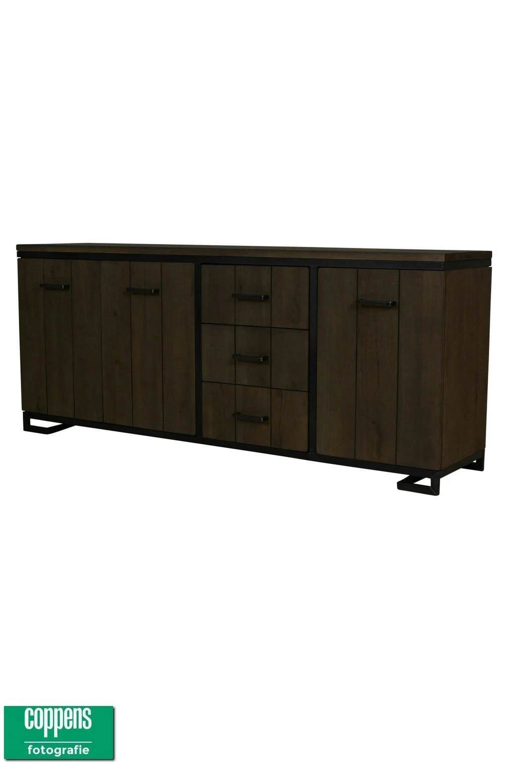 Mooi eiken dressoir met een industriele look.