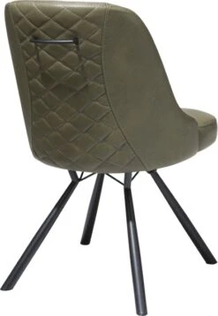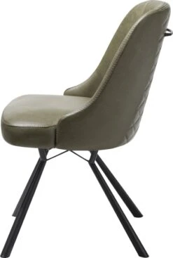 Wat is hij gaaf deze moderne eetkamerstoel Eefje van [email protected] De zwart metalen stoelpoten en stiknaden op de rugleuning geven deze stoel een trendy eigentijds design. Voor de stoffering is gekozen voor Laredo leder in de kleur Groen. De handgreep op de rugleuning beschermt de stof tegen slijtage en/of vlekken bij het verplaatsen van de stoel.