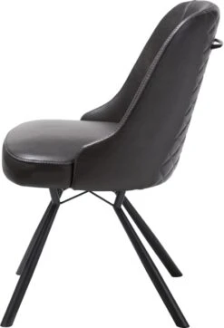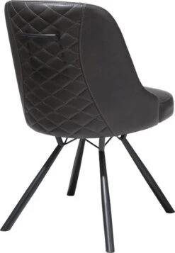 Zoek je een moderne lederen eetkamerstoel? Dan is deze stoel Eefje van [email protected] een aanrader. De stoel heeft een eigentijds design met heerlijke kuip en is bekleed met Laredo leder in de kleur Off Black. De eetkamerstoel staat op een zwart metalen frame met 4 poten. Opvallend aan de rugleuning zijn de stiknaden en handgreep. Dankzij de handgreep is de stoel eenvoudig te verplaatsen en voorkom je slijtage op de rugleuning.
