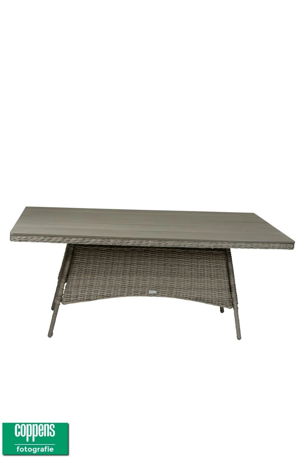 De Osborne tuintafel van 180x107xH74 cm heeft een aluminium frame met halfrond vlechtwerkdraad 6,5mm in de kleur organic Grey en een stevige Sand polywood tafelblad. Polywood is een zeer sterk en eenvoudig te onderhouden kunststof in een houtstructuur. Het is duurzaam, weersbestendig en licht van gewicht. Zo hebt u wel de warme uitstraling van hout, maar geen last van barsten of rot. TIP: De tuintafel is perfect te combineren met de Osborne dining stoelen.