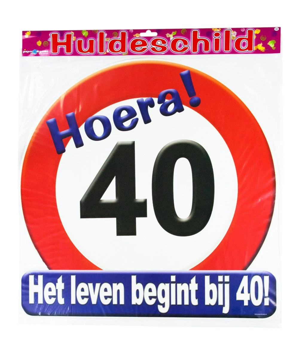 Huldeschild hoera! 40 jaar. Het leven begint bij 40!