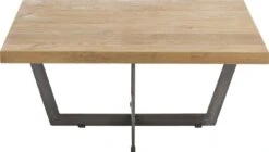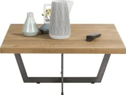 Deze moderne salontafel uit de Larissa collectie van [email protected] heeft een opvallend design. Het zwart metalen onderstel heeft een bijzondere vormgeving. Het eikenhouten tafelblad heeft een mooie tekening en een warme uitstraling. Leuk om te combineren met de bijzettafel uit dezelfde collectie.