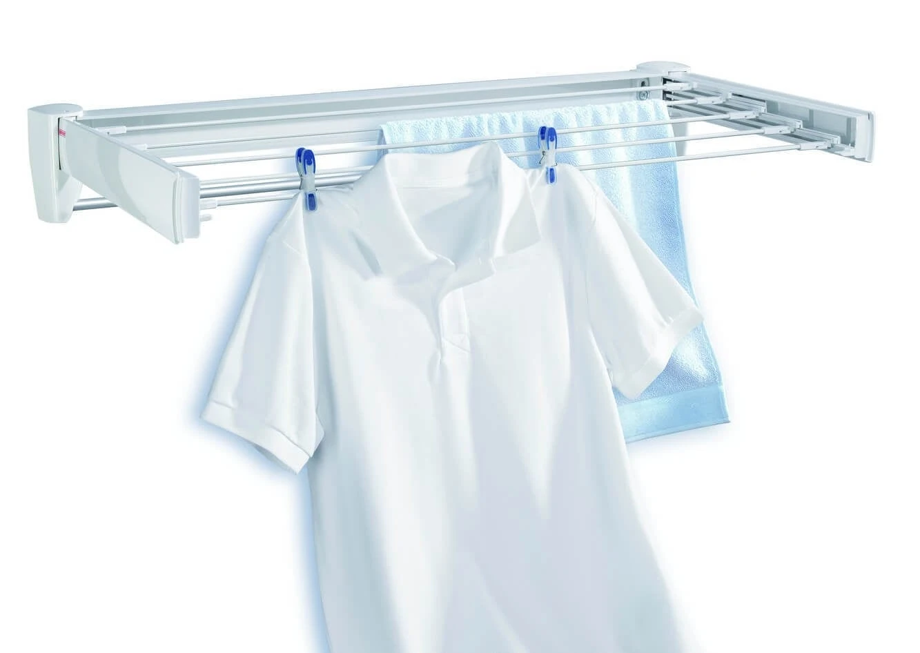 - Uittrekbaar wanddroogrek voor badkamer of balkon.