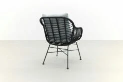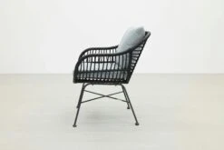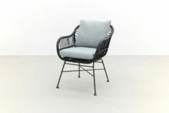 De Garden Impressions Margiet dining tuinstoel is nieuw in de collectie bij Coppens warenhuis. De tuinstoel kenmerkt zich door zijn unieke design. De stoel heeft een rotan look. Het rotan is gemaakt van kunststof wat ervoor zorgt dat de stoel een extra lange levensduur heeft. De Margriet tuinstoel heeft een stalen frame dat een powder coated behandeling heeft gehad. De kleur van de poten is antraciet en de kuip heeft een naturel kleur. De stoel wordt geleverd inclusief bijhorend zit en rugkussen in mint grey.