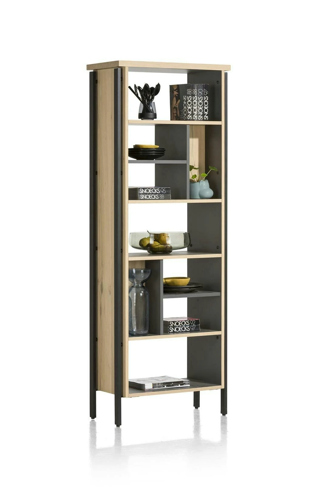 De roomdivider uit de Morala collectie van [emailΒ protected] is 70 cm breed en 190 cm hoog. Opvallend is het eigentijdse design en strakke lijnenspel. Het meubel is gemaakt van metaal in combinatie met wild eikenfineer. Deze roomdivider heeft de kleur Natur. Je kunt de roomdivider op meerdere manieren gebruiken, haaks om de wand om de ruimte in twee stukken te verdelen, of plat tegen de wand als open wandkast. De roomdivider is in meerdere kleuren leverbaar. In onze showroom aanwezig in de kleur “Railway brown gelakt” ( Let op, laatste showroommodel is dus ook RAILWAY BROWN!! )