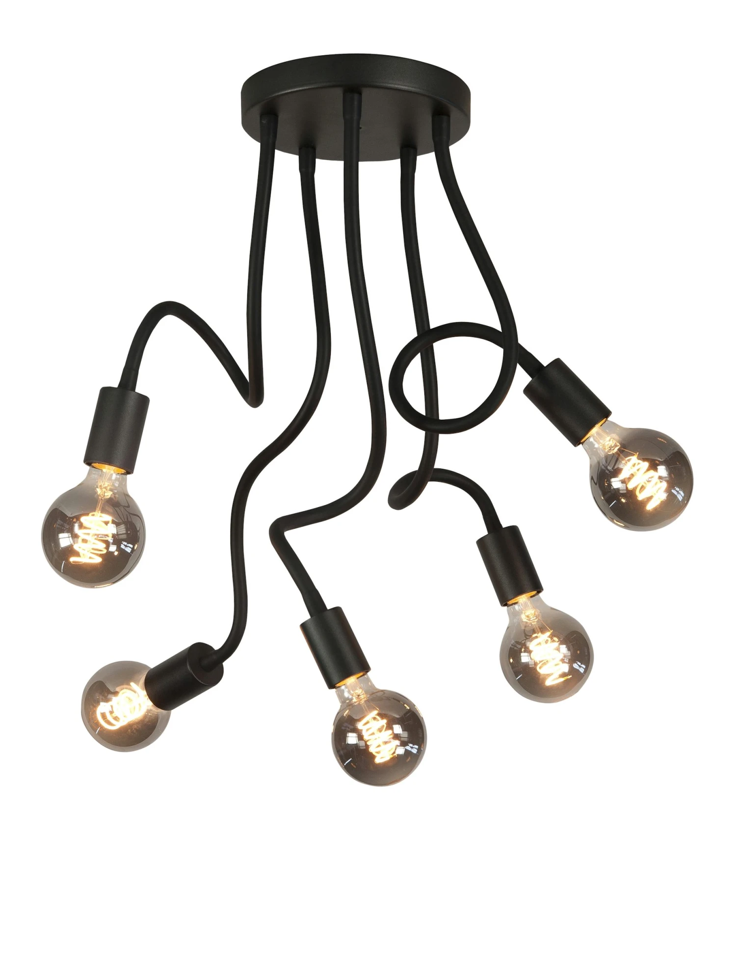 Lamp met 5 flexibele armen die in elke gewenste stand gebogen kunnen worden. Beschikt over 5 E-27 fittingen. Wordt geleverd exclusief lichtbronnen.