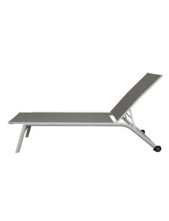 met verstelbare rug door middel met de hand beugel te verzetten. Het frame is van aluminium en antraciet gepoederd coat. het textileen is ideaal voor goede lig comfort en is direct droog. . Mooie strakke lijnen een mooie moderne vormgeving.