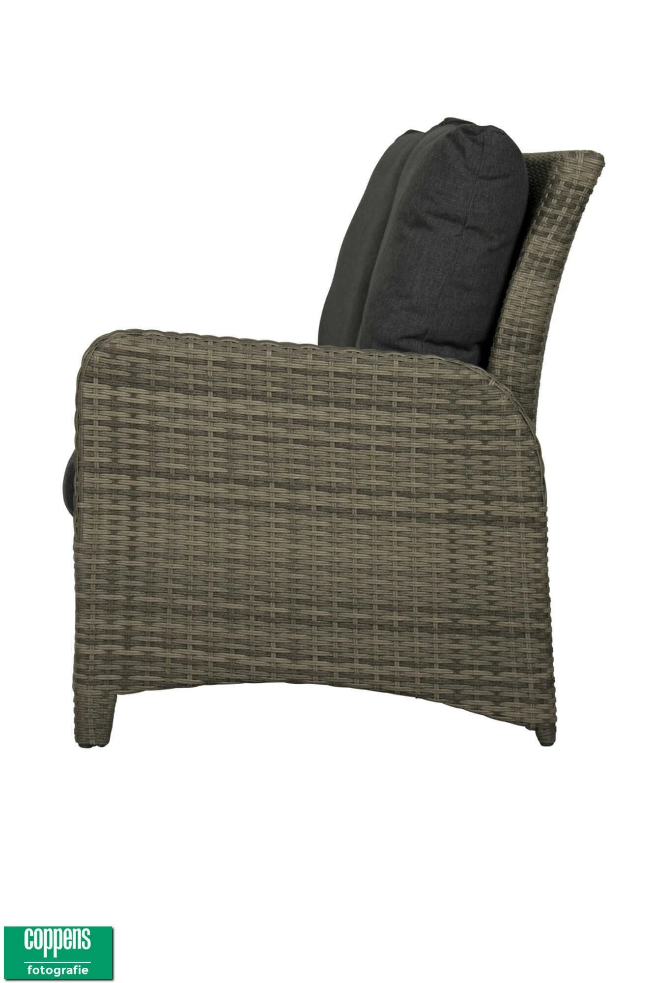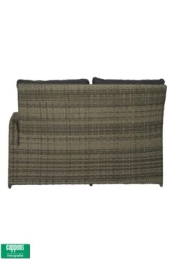 Het vlechtwerk van deze Exclusief Aruba 2-zits bank met linkse armsteun is dubbel half rond in de kleur licht Grijs. Het frame is gemaakt van onderhoudsvriendelijk aluminium. De kussens zijn van Olefin doek. Dit materiaal is kleur echt en kan tegen een enkel buitje.