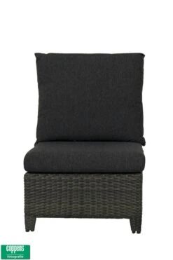 Het vlechtwerk van dit Exclusief Aruba tussen element is dubbel half rond in de kleur Antraciet. Het frame is gemaakt van onderhoudsvriendelijk aluminium. De kussens zijn van Olefin doek. Dit materiaal is kleur echt en kan tegen een enkel buitje.