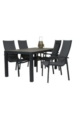 Deze set bestaat uit 4 stapelbare tuinstoel Cambrige met tuintafel Levas Antraciet