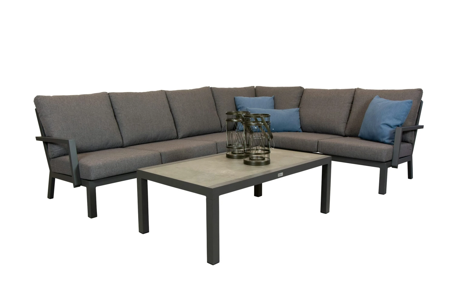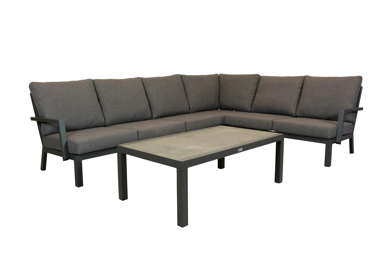 Met deze comfortabele loungehoek heb je een eigentijdse hoekset met een goed zitcomfort. Het frame is gemaakt van aluminium wat gepoedercoat is in de kleur mat antraciet. De kussens zijn gemaakt van een Olefin stof wat weersbestendig en zeer kleur echt is. De set is makkelijk te monteren en zit compleet verpakt in de doos. welke opstelling u maakt.