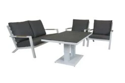 Loungeset Ascon 2 zitsbank met 2 lounge stoelen en tafel in hoogte verstelbaar wit