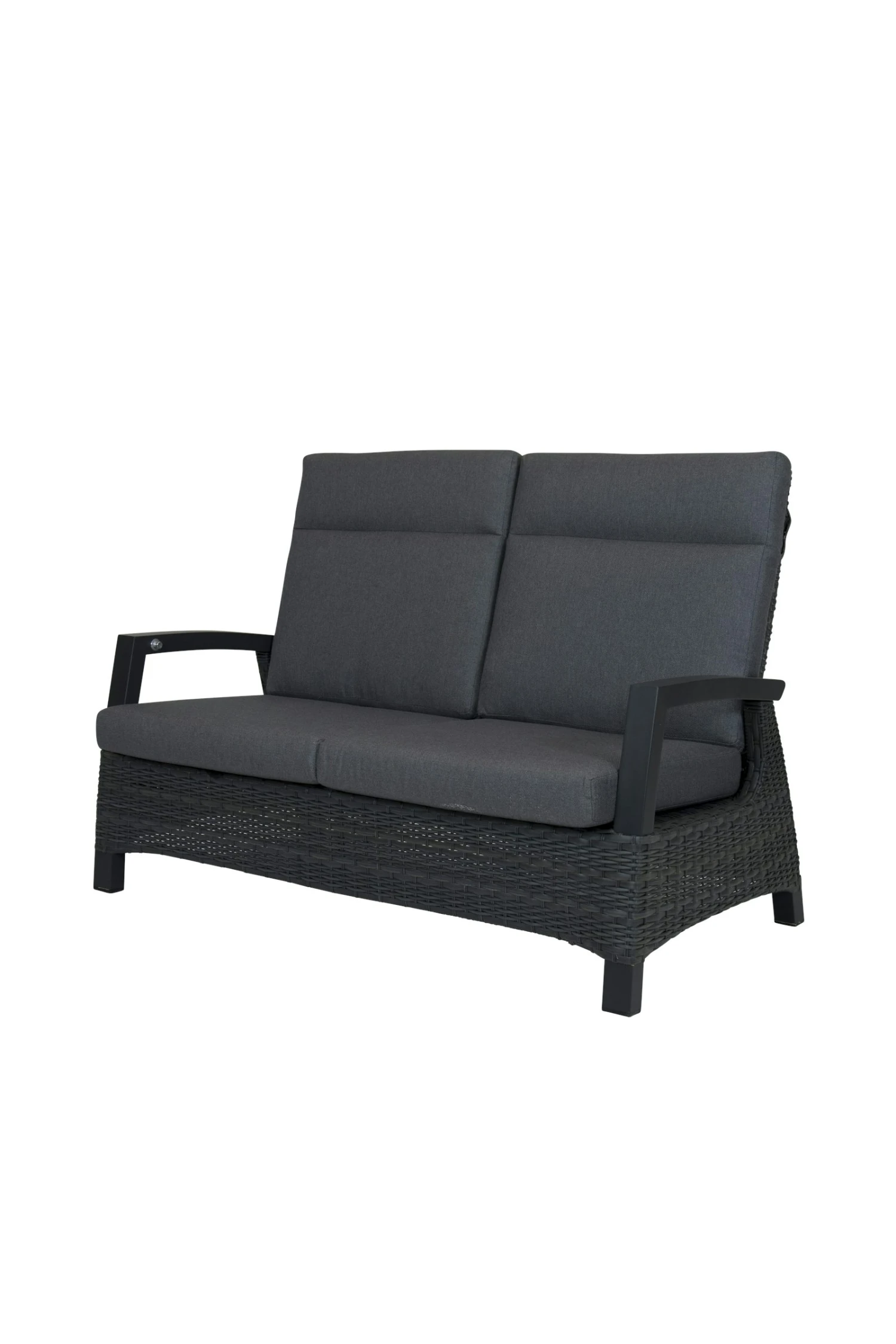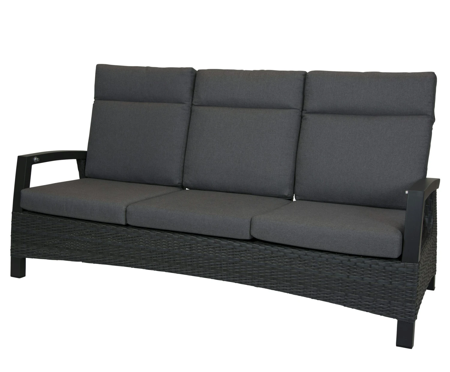 Deze Darwin lounge bank 3 en 2 zits heeft een verstelbare ruggen door middel van een gasveer zodat hij in ieder gewenste stand gezet kan worden alle 3 afzonderlijk . De Darwin bank heeft een extra hoge rug zodat je hoofd er makkelijk op kan steunen. De lounge bank heeft een combinatie van aluminium frame mat antraciet, met wicker vlechtwerk. hierdoor staat een mooie strakke vormgeving. Kussens zijn van Olefin stof wat zeer goed kleur echt is en fijn aan voelt. De zitkussen zijn 10 cm dik en de rug kussen 8 cm. Deze bank is makkelijk te combineren met losse fauteuils in combinatie met een voeten bank Darwin. ook is deze serie Darwin leverbaar met een lounge stoel ook met gasveer verstelbare rug
