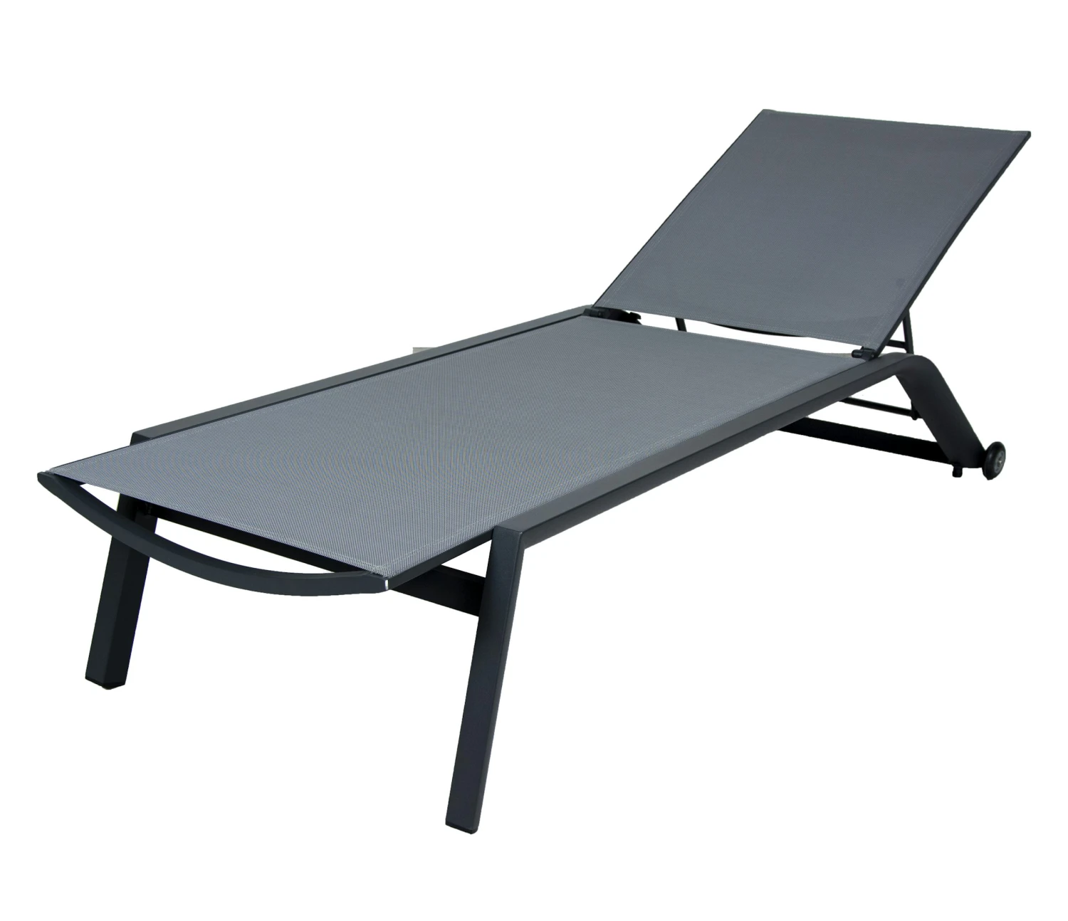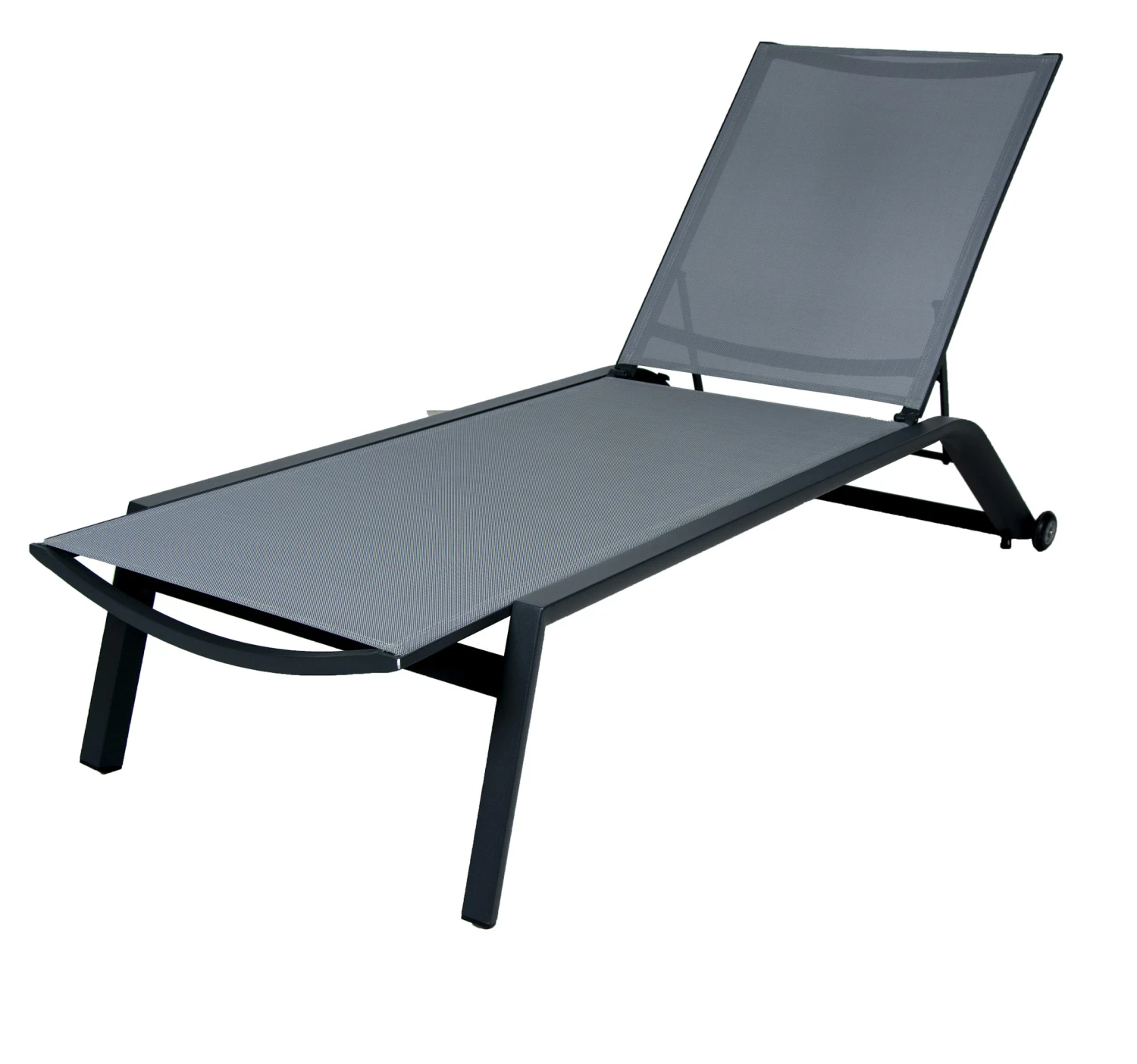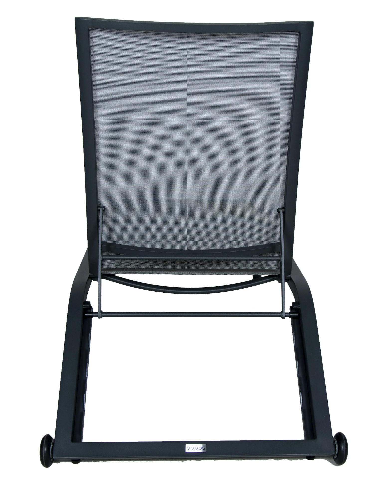 Ligbed Nanna met verstelbare rug. Deze kan door middel van een beugel aan de achterkant verzet worden met de hand. Het frame is van aluminium en is Antraciet gepoedercoat. Het textileen is ideaal voor een goed ligcomfort en is direct droog. Dit ligbed voor je tuin heeft een mooie moderne vormgeving met strakke lijnen.