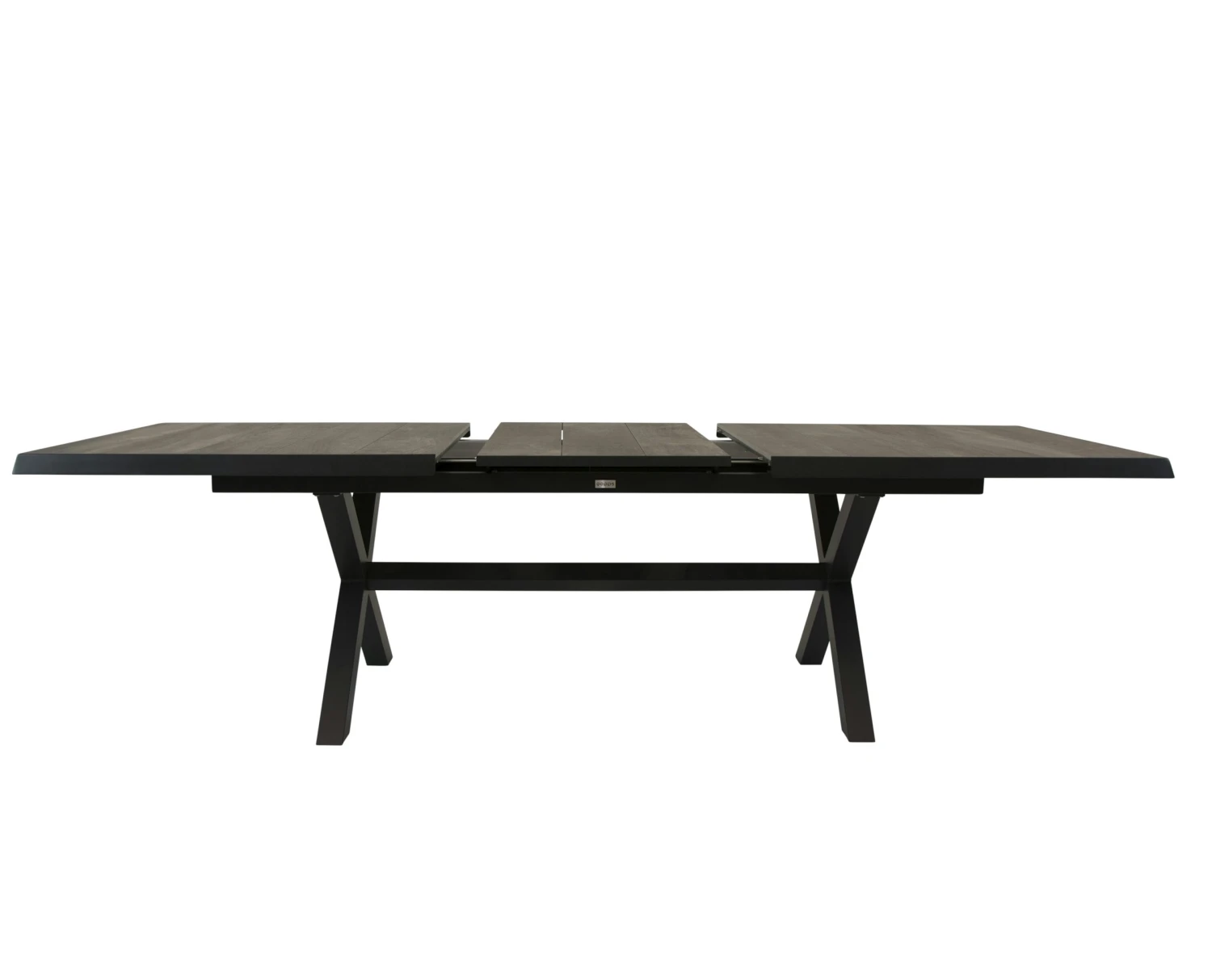 De Ottowa tuintafel is een zeer mooie en strakke uitschuif tuintafel. Door zijn mooie kruispoot en uniek uitschuif systeem. Je kunt de tuitafel met 1 persoon bedienen. Je kan de tafel in een hand omdraai uitschuiven naar 265 cm. Het frame is van onderhoud aluminium en is gepoeder coat in de kleur mat antraciet ook wel royal grey genoemd. Het blad is van keramische tegels. Deze tegels zijn zeer onderhoudsvriendelijk.