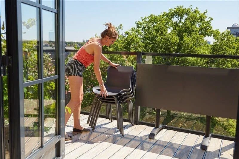 Stapelbaar! Wanneer je een klein balkon of terras hebt is de Sophie Pro Element stacking dining stoel uitermate geschikt! Deze prachtige en modern ogende dining stoel is vervaardigd uit een kunststof kuip en aluminium onderstel zit als gegoten. Het unieke aan deze kuip is dat deze is ontwikkelt voor het ultieme zitcomfort. Dikke billen of dunne billen? Ga zitten en relax!