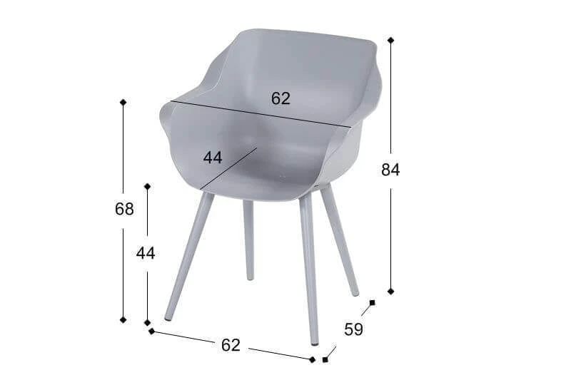 De Sophie Studio dining armstoel bestaat uit een aluminium onderstel met daarop een kuip van hoogwaardige kwaliteit kunststof. Dankzij het ontwerp, Curved Technology wordt er een extreem comfortabele zit ervaren. Niet alleen de zit is geweldig! De Sophie Studio heeft een unieke uitstraling door de conische poten.