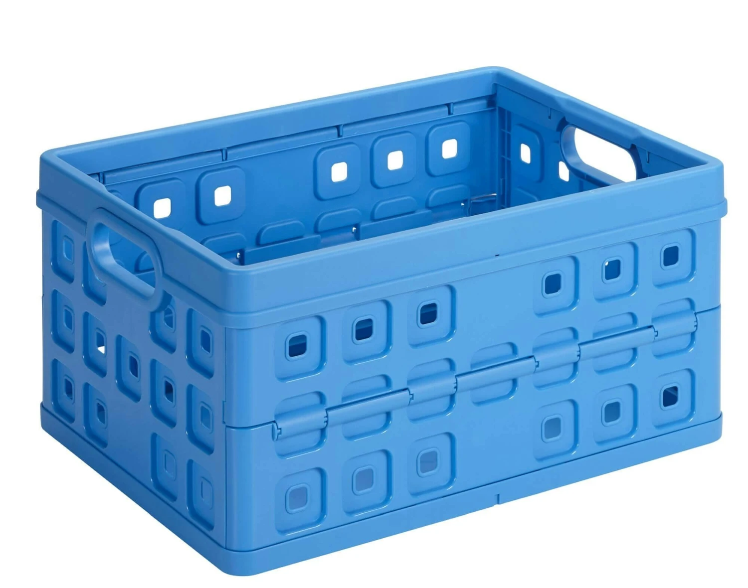 Handige vouwkrat voor het vervoeren van boodschappen of als opslag plek in de garage. Bespaart ruimte Makkelijk in- en uit te klappen. 30kg laadvermogen.