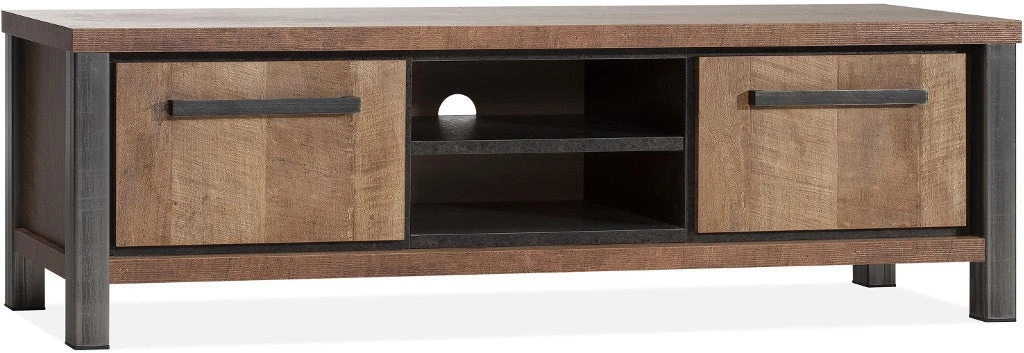 TV dressoir model Kinga in “Old teak” decor. 2 x Softclose deurtjes en 2 x open vak. Afmetingen 50 x 170 x 48 cm. ( H x B x D ). Programma Kinga is gemaakt van het onderhoudsvrije en krasvaste Lamulux.