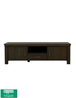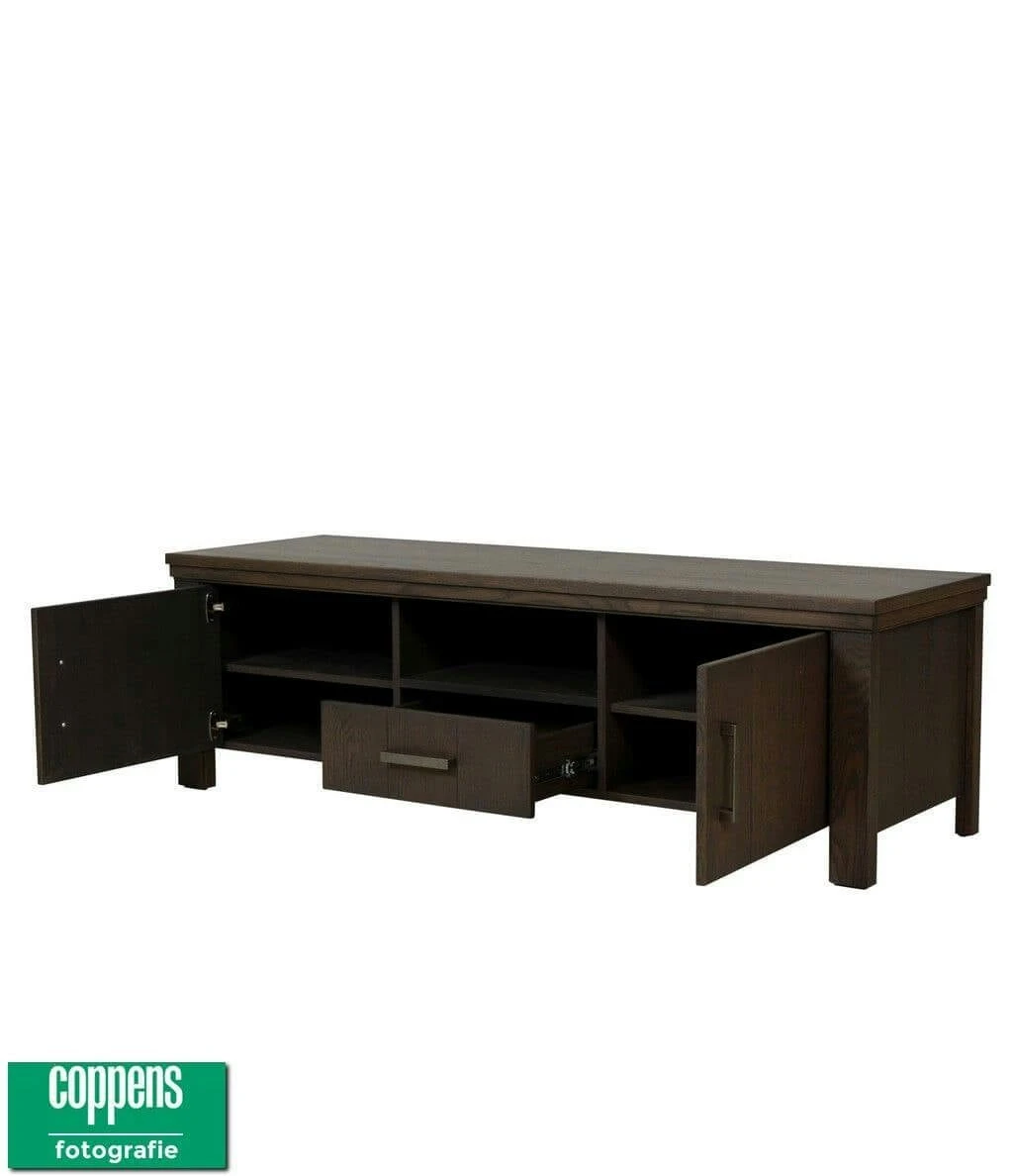 TV-dressoir uit het programma Ravenna. Dit meubel beschikt over 2 deuren en 1 lade, allen met soft-close en een open vak. Afmetingen: 52 x 171 x 54 cm. ( H x B x D ). Leverbaar in diverse maten, uitvoeringen en kleuren.
