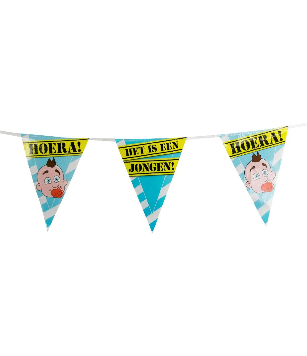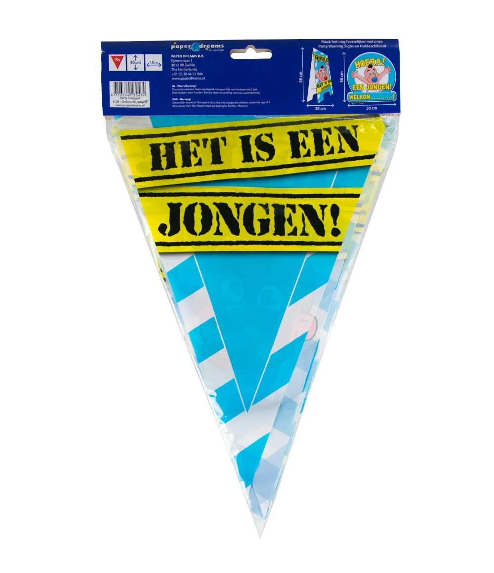 De vlaggenlijn It’s a boy! is de ideale versiering als er een jongetje geboren is! Door de gebruikte kleuren en het vrolijke design vallen deze party vlaggen dan ook extra goed op! De vlaggetjes zijn gemaakt van folie en zijn aan beide zijden bedrukt. Ze hebben een lengte van 10 meter.