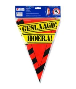 De vlaggenlijn geslaagd is de ideale versiering als er iemand geslaagd is voor bijvoorbeeld het schooldiploma. Door de gebruikte kleuren en het vrolijke design vallen deze party vlaggen dan ook extra goed op! De vlaggetjes zijn gemaakt van folie, hebben een lengte van 10 meter.