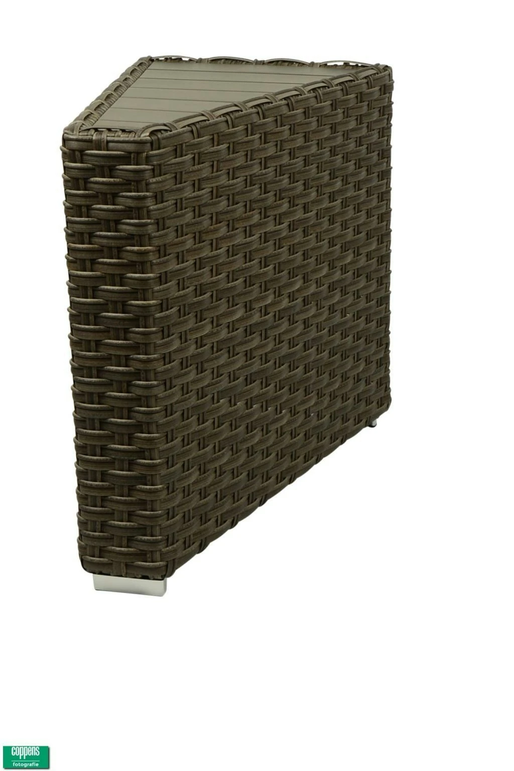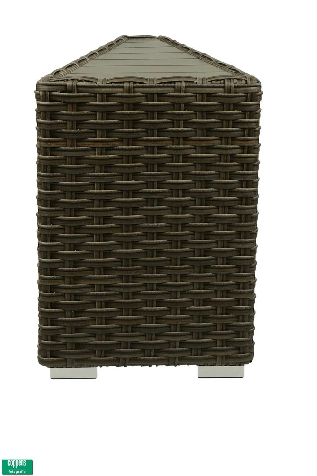 Tussen tafel voor de Washington lounge set. Ideaal om uw hapje of drankje op te zetten. De tussentafel heeft een aluminium frame, luxe bruine draad er om heen en daar boven op een Polywood blad.