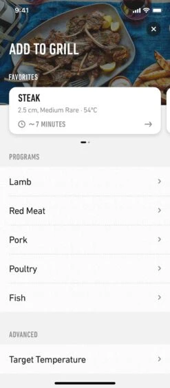 β’ Selecteer de gewenste gaarheid (bijv. medium-rare) en krijg een waarschuwing wanneer het vlees gaar is